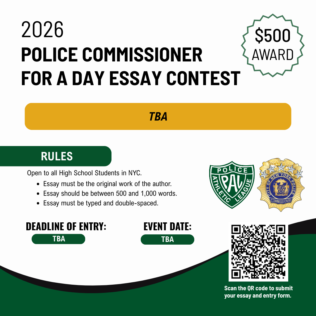 New York City students in grades 9-12 are invited to enter the PAL/NYPD “Police Commissioner for a Day” essay contest.